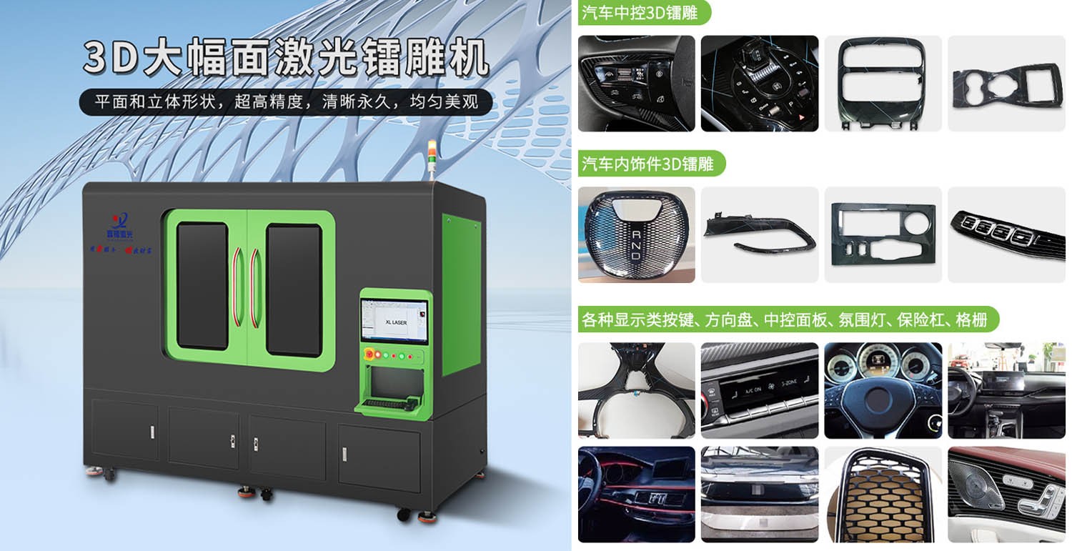2022年下半年,勤進(jìn)達(dá)實(shí)業(yè)與鑫鐳激光就汽車配件3D大幅面激光鐳雕項(xiàng)目達(dá)成了合作,汽車中控臺(tái)、按鍵、方向盤、門板裝飾件、氛圍燈、格柵大幅面鐳雕,圖案清晰永久,線條優(yōu)美,色彩均勻,無拼接。