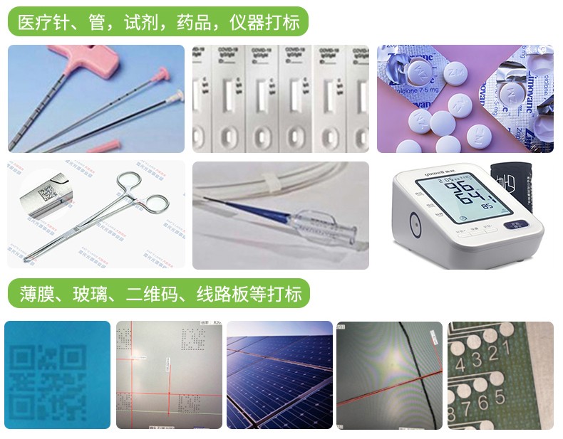 針對皮秒級、高精度、快速加工需求專門研發(fā)的高端激光打標(biāo)設(shè)備,采用超短脈沖皮秒激光,可對各種材料進(jìn)行超精細(xì)打標(biāo),適合對標(biāo)記精細(xì)度要求非常高的產(chǎn)品及脆性材料加工,特別適合透明、反光性強(qiáng)的材料精細(xì)打標(biāo)。具有良好防偽效果和抗蝕刻、抗氧化等功能。在醫(yī)療器械,醫(yī)療用品,手術(shù)刀具,汽車精密器件,電子元器件,模具精雕,芯片,光伏太陽能,高端產(chǎn)品超精細(xì)打標(biāo)表現(xiàn)優(yōu)異,備受青睞。