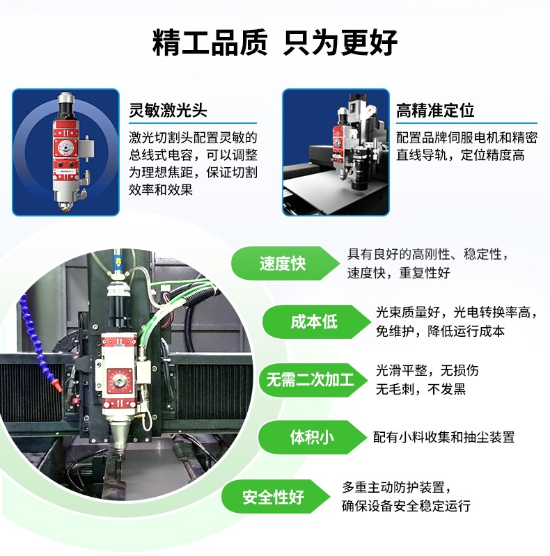 該款高精密小幅面金屬激光切割機(jī),精選優(yōu)質(zhì)光纖激光器,結(jié)合公司自主設(shè)計(jì)龍門式數(shù)控機(jī)床系統(tǒng),采用高強(qiáng)度整體焊接機(jī)身,具有良好的高剛性、穩(wěn)定性,以精密滾珠絲桿、直線導(dǎo)軌傳動(dòng)運(yùn)行,主要針對5mm以下金屬材料高精密切割,具有精度高、速度快、轉(zhuǎn)化率高、免維護(hù)、運(yùn)轉(zhuǎn)成本低、體積小等一系列優(yōu)點(diǎn),特別適合對不銹鋼、合金鋼、銅、鈦等金屬材料的精密切割,廣泛應(yīng)用于金屬工藝品、金銀飾品、五金制品、新能源、精密機(jī)械、汽車配件、眼鏡、銘牌、電子、玩具、廣告等行業(yè)。